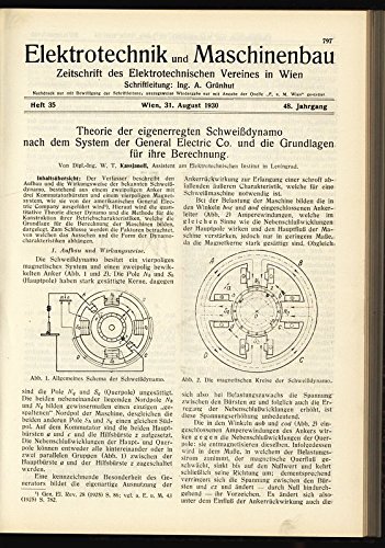 Theorie der eigenerregten Schweißdynamo nach dem System der General Electric Co. und die Grundlagen für ihre Berechnung, in: ELEKTRONIK UND MASCHINENBAU, Heft 35/1930 (48. Jg.). PDF Kindle